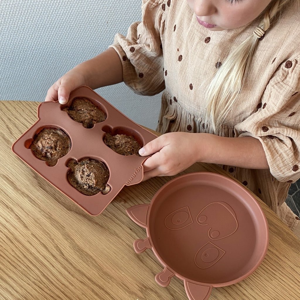 DIERENVORMIGE BAKTINNeem je kleintjes mee in de keuken en bak je favoriete muffins in onze bakvorm in de vorm van schattige dieren. De siliconen zijn goedgekeurd voor levensmiddelen. Kleur: Caramel CaféKwaliteit: Food grade siliconen (LFGB)Afmetingen: L: 17,1 cm + B: 16,3 cm + Diep 4 cm