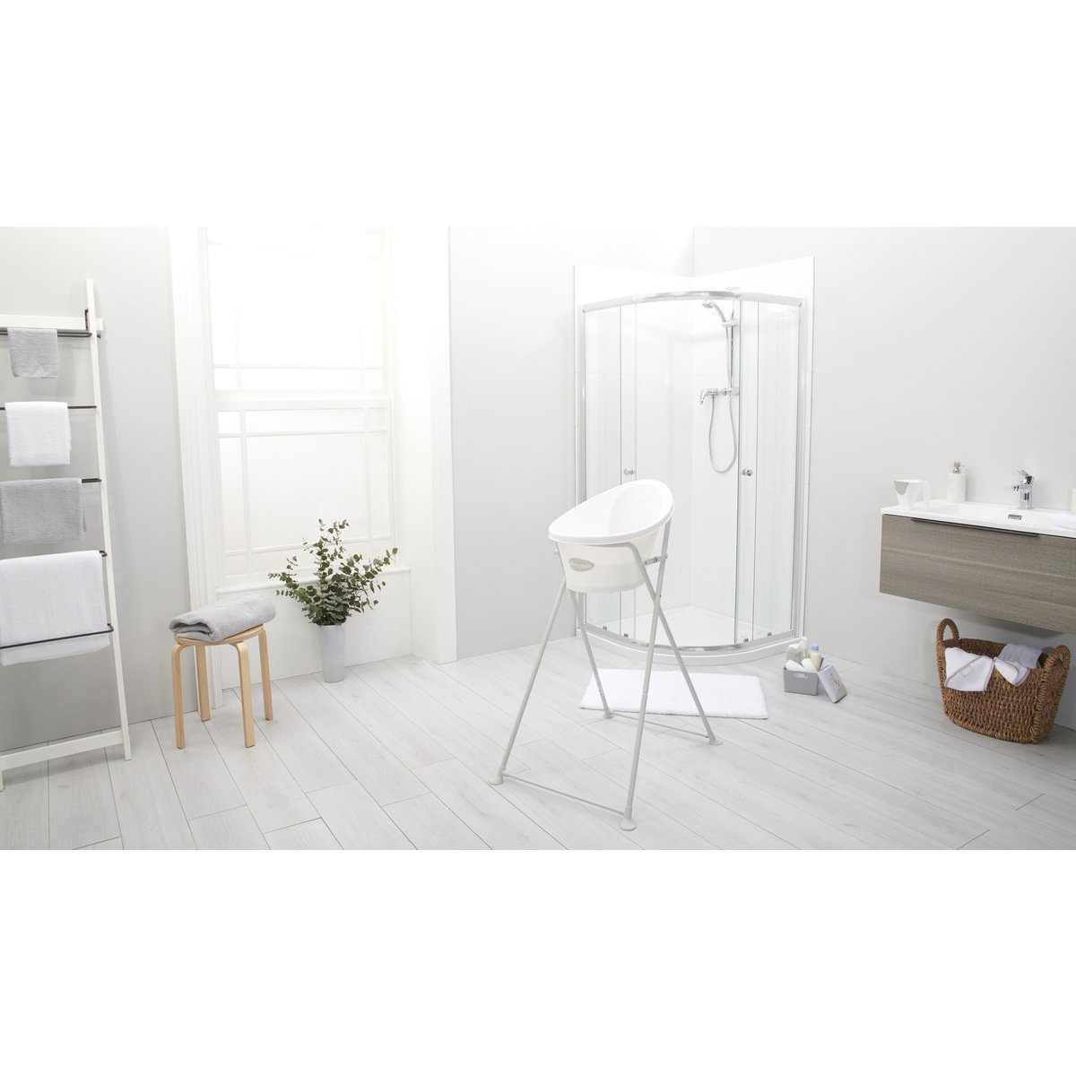 De opvouwbare badstandaard is de perfecte aanvulling op het Shnuggle babybadje en brengt je baby tot heuphoogte. Dit vermindert rugpijn en maakt het gemakkelijker om de baby in bad te doen.