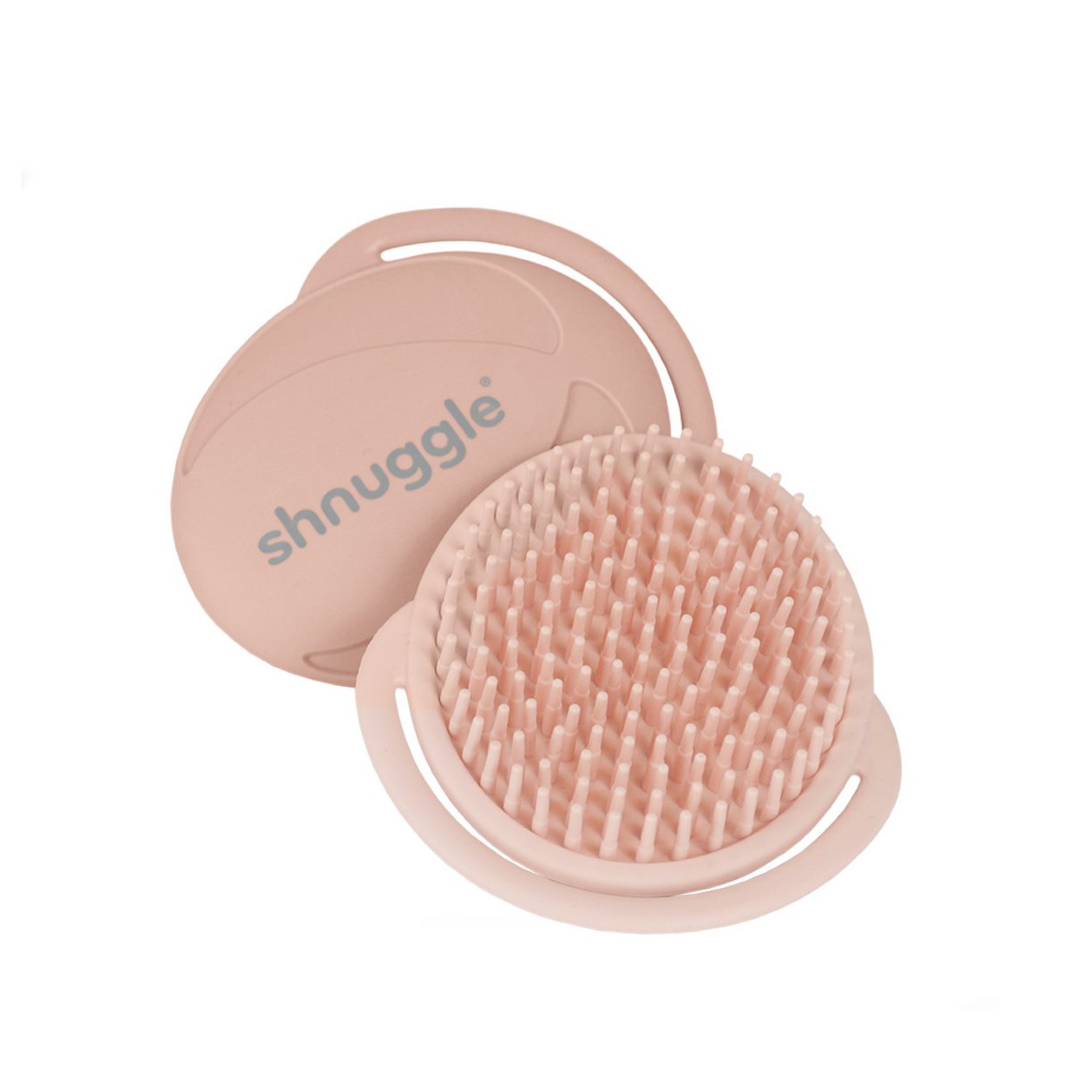De Shnuggle babybadborstel is ontworpen om het haar van de baby voorzichtig te wassen, terwijl het wiegkapje, de droge huid en het verlichten van eczeem worden verwijderd. De ergonomische vorm past in de palm van je hand en het zachte handvat met lussen houdt het stevig op zijn plaats, zodat je het haar van je baby comfortabel en gemakkelijk kunt wassen. Het zachte gevoel van de borstel masseert de baby zachtjes voor een rustgevende badervaring.
